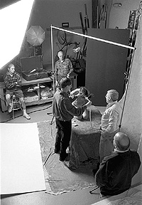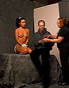 Morey adjusts the model's hair and rope prior to shooting. |